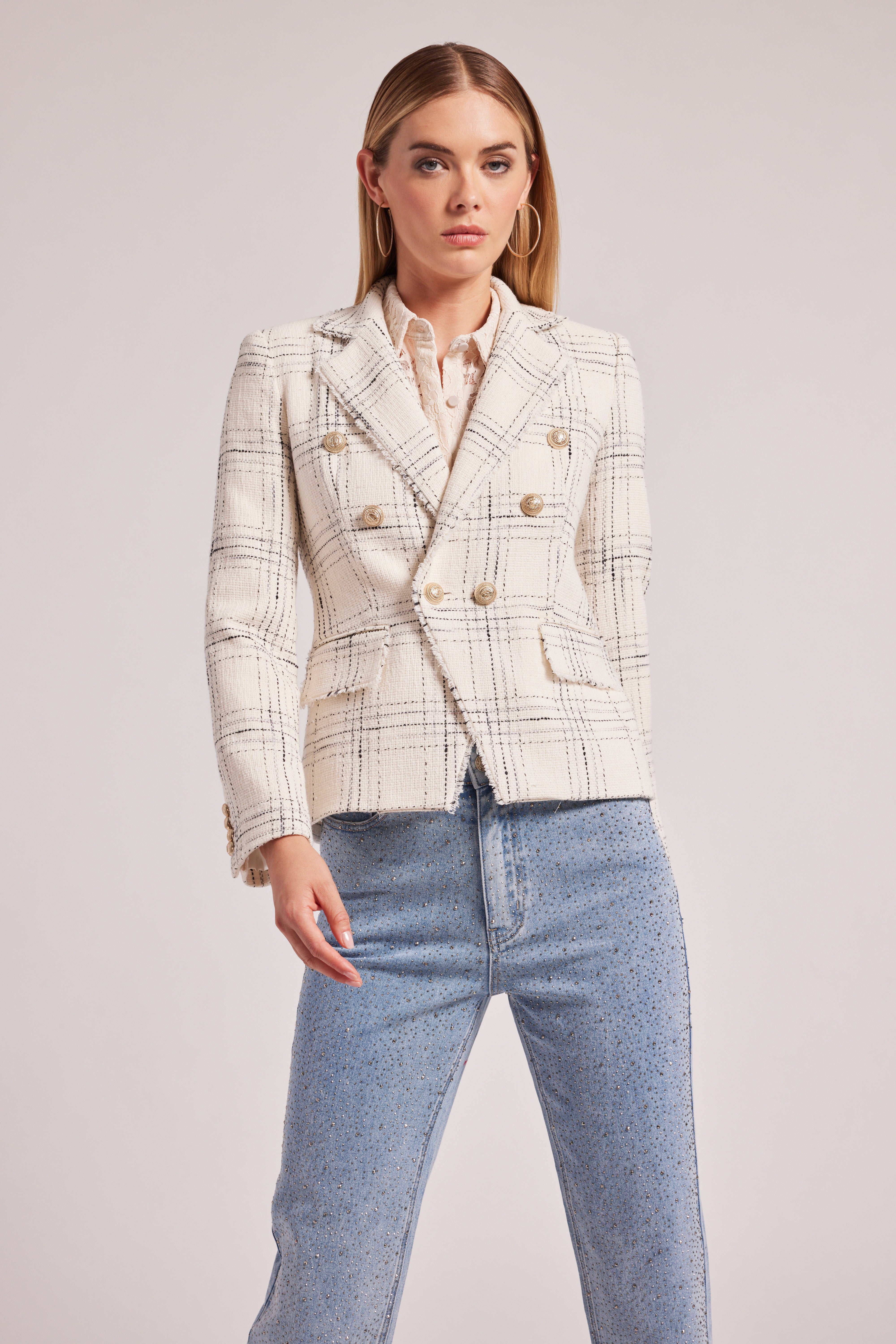 The Eliza is the ultimate timeless fashion staple. With crisp tweed, a double breasted silhouette and sleek gold buttons, how much more classic could it be? Pair with tapered slacks and a button-up for a polished professional look. Generation Love’s tweed is crafted with recycled fabric.
