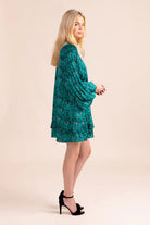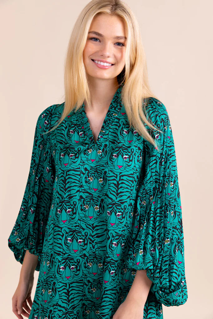 The Liza dress in Party Animal is the perfect staple dress for winter. Perfect for wearing day or night and so easy to dress up or down. The Liza features a pleated detail along the neckline and bottom of the dress. This dress is designed to be loose fitting and features long balloon sleeves.