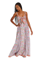 The floor-sweeping Martina Maxi offers drama and comfort in our mixed block print cotton fabrication. Designed with a tie front bodice leading to an empire waist and paneled skirt. The smocked back bodice and elastic shoulder straps offer an easy fit to this beautiful spring maxi dress. Fully lined.
