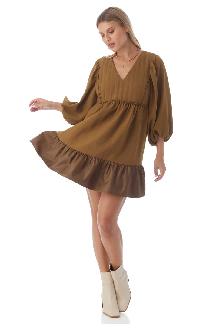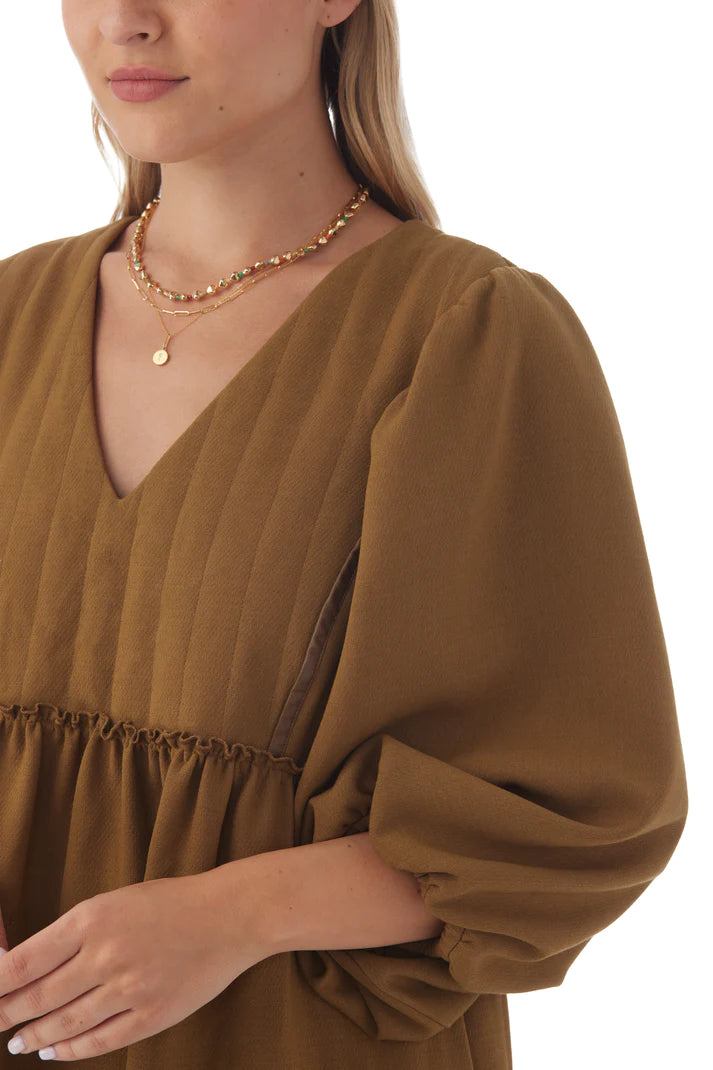 The Addison Dress is an easy to wear silhouette with a flattering v-neckline and ¾-length puff sleeves. She hits above the knee and has a relaxed fit. Includes pockets and a left side invisible zipper.