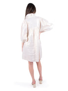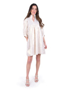 The Stella Dress in White Gold exudes both comfort and style. The signature high ruffled collar adds sophistication that pairs well with statement earrings and chunky necklaces for an elevated look. The effortless relaxed style is complimentary to every body type and is sure to become your favorite Emily McCarthy Collection style.