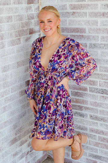 MEET ME IN SANTORINIA Leona Dress - Purple Ikat Floral
