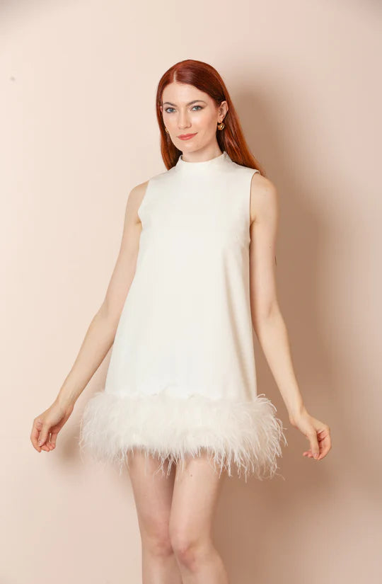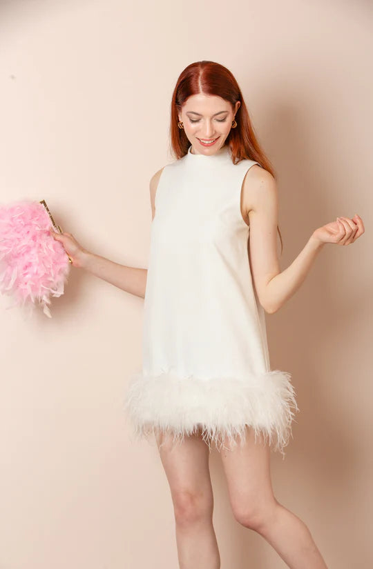 JESSIE LIU Sleeveless Dress with Feathers - White