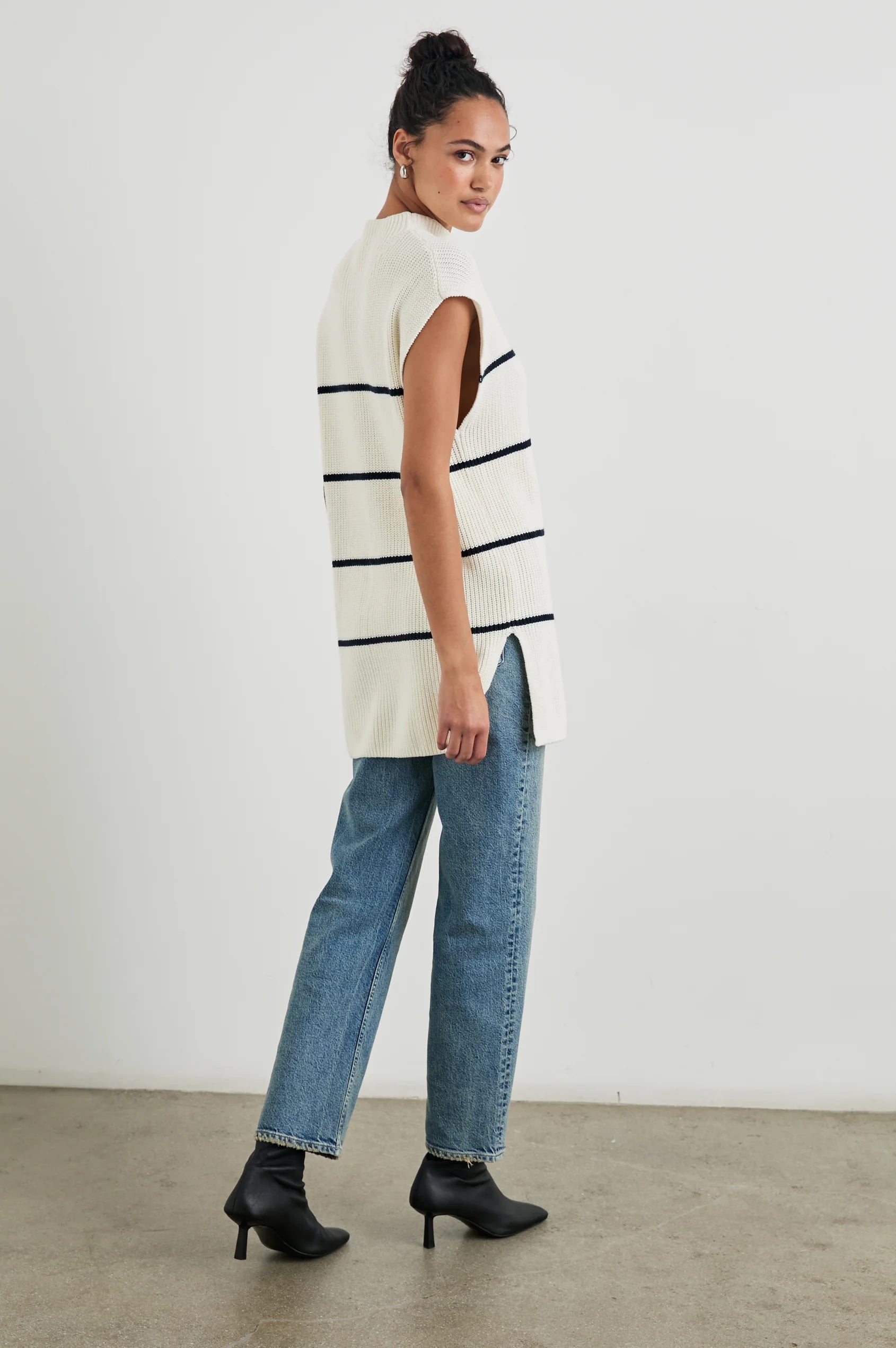 A MUST HAVE! Made with a blend of cotton and cashmere, experience unparalleled softness. Featuring a funnel neck and side slits, this versatile piece can be layered for colder temperatures or worn alone in warmer seasons. Elevate your wardrobe with luxury and comfort.