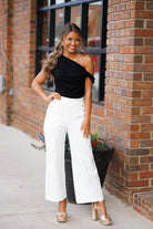Create a sophisticated and polished aesthetic with these pants that feature faux buttons which add a timeless touch, bringing a classic charm. A premium blend of double stretch twill, viscose, cotton, and spandex not only ensures a soft and comfortable feel but also provides durability for long-lasting wear. The cropped length exudes a modern and laid-back vibe, making these pants a versatile choice for various settings.