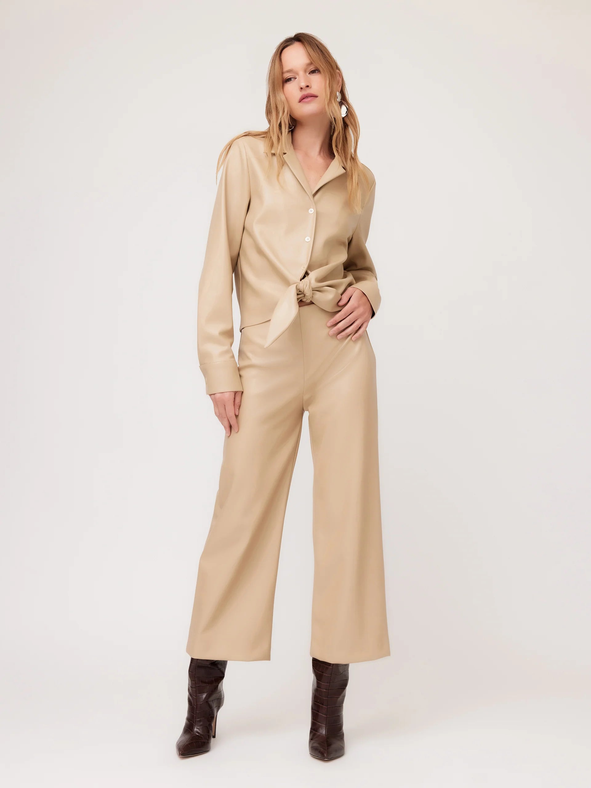 FIFTEEN TWENTY Wide Leg Cropped Pants - Beige