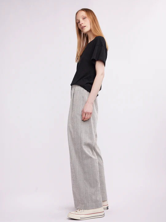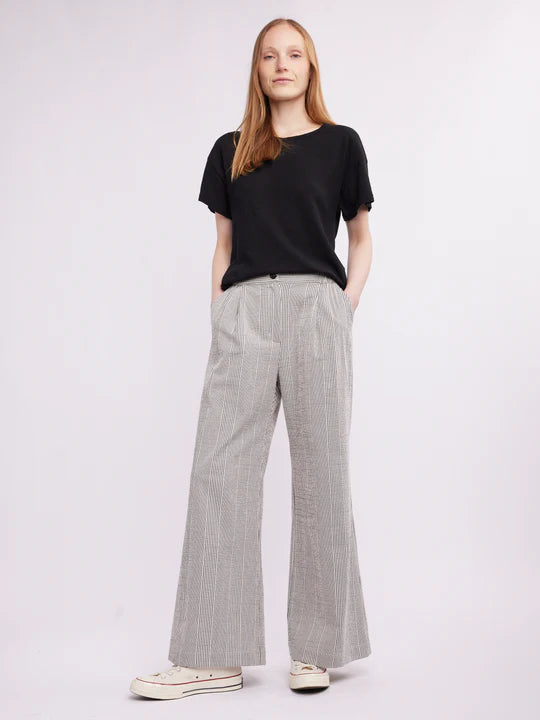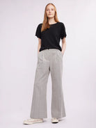 The Caroline Pants provide a chic and sophisticated look with their black and white striped fabric, wide leg design, and flattering fit. Perfect for formal occasions or a night out, these pants are sure to make a statement.