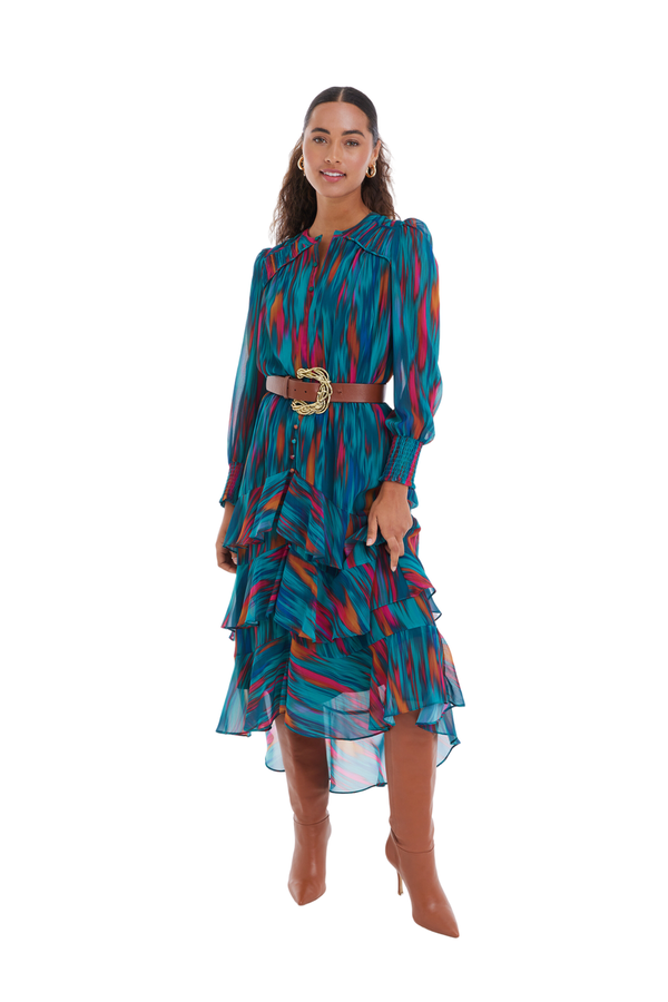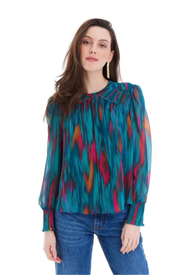 The Brinkley Blouse is designed in our exclusive Blur Print and adorned with pintucked detailing. Cut with a scoop neckline and center front buttons, this blouse features a loose and flowy fit through the fully lined body. Long sleeves end in a smocked cuff.