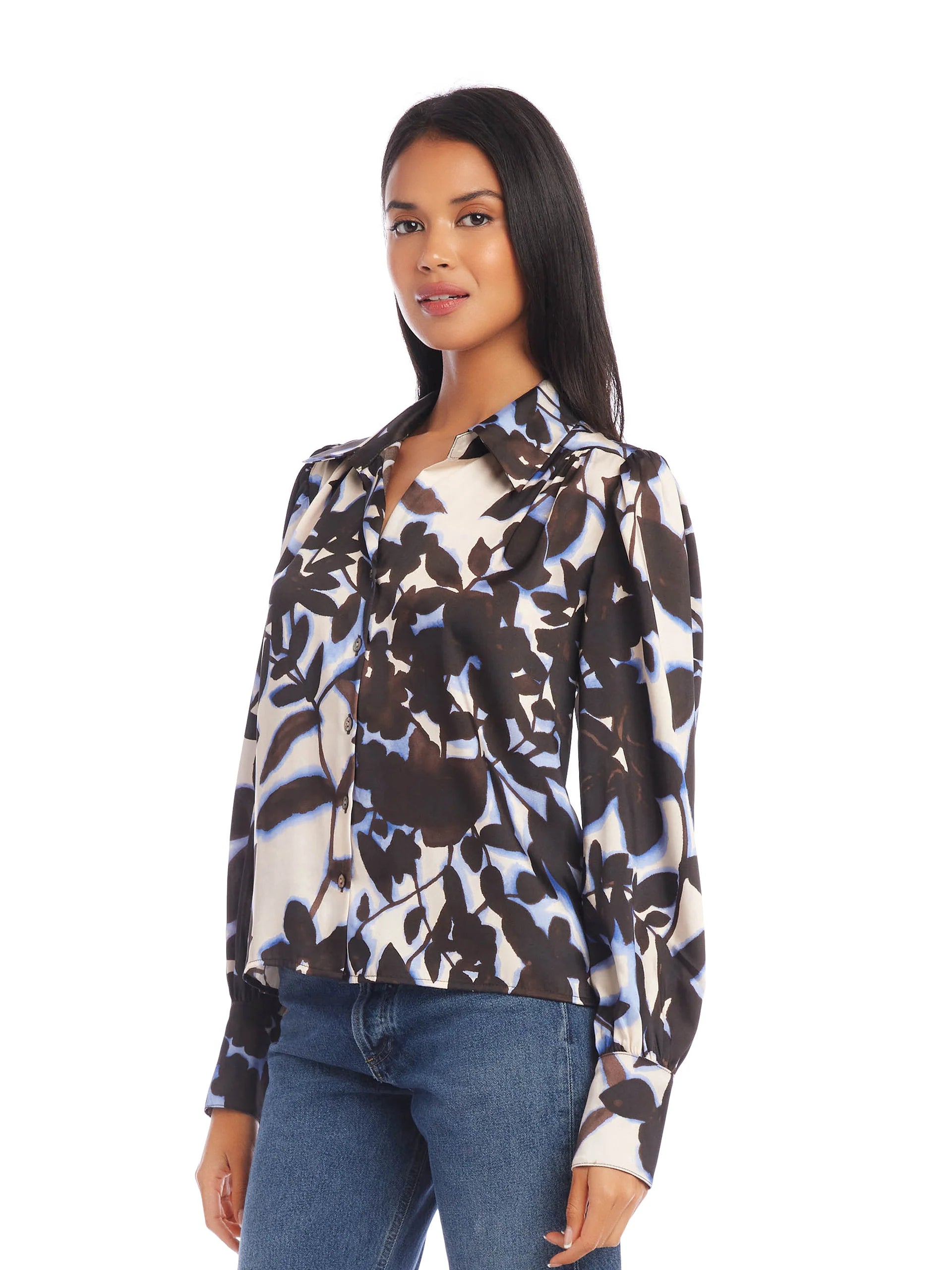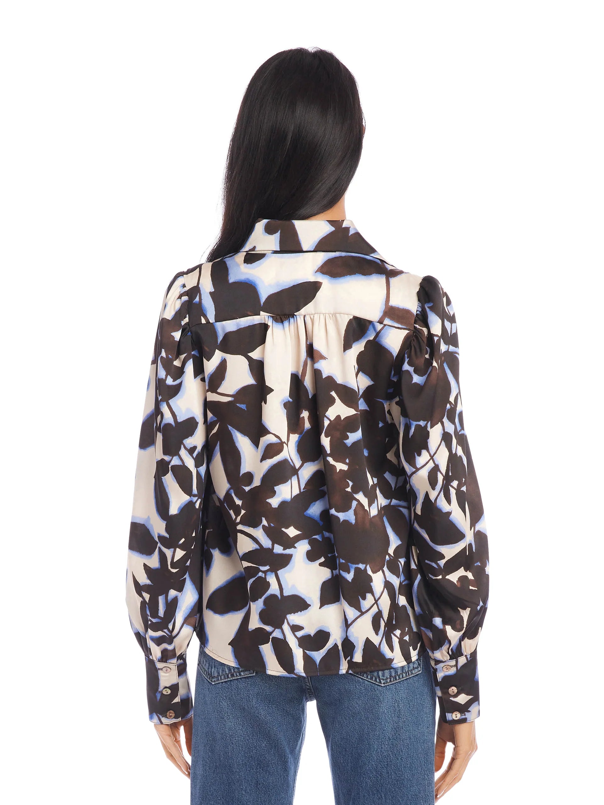 FIFTEEN TWENTY Blouson Sleeve Top - Shadow Leaf Satin Print