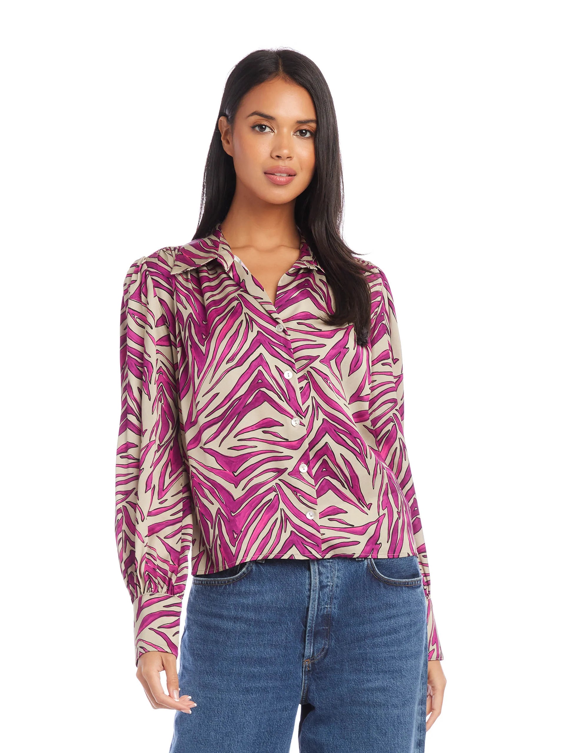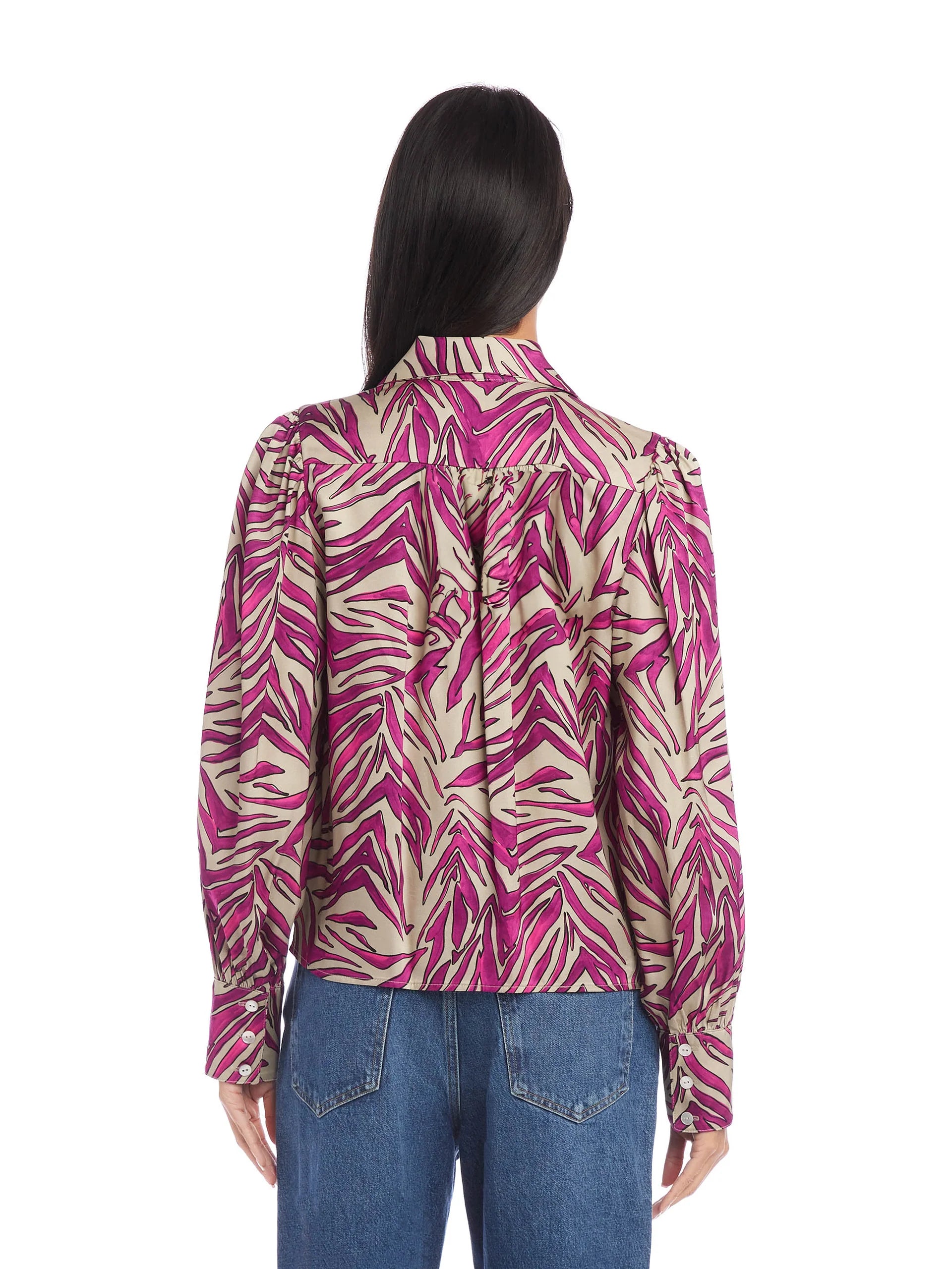 Embrace the exotic as you create a fierce statement in this blouse. The soft and satin feel prioritizes comfort while the unique pattern creates interest as a focal point.