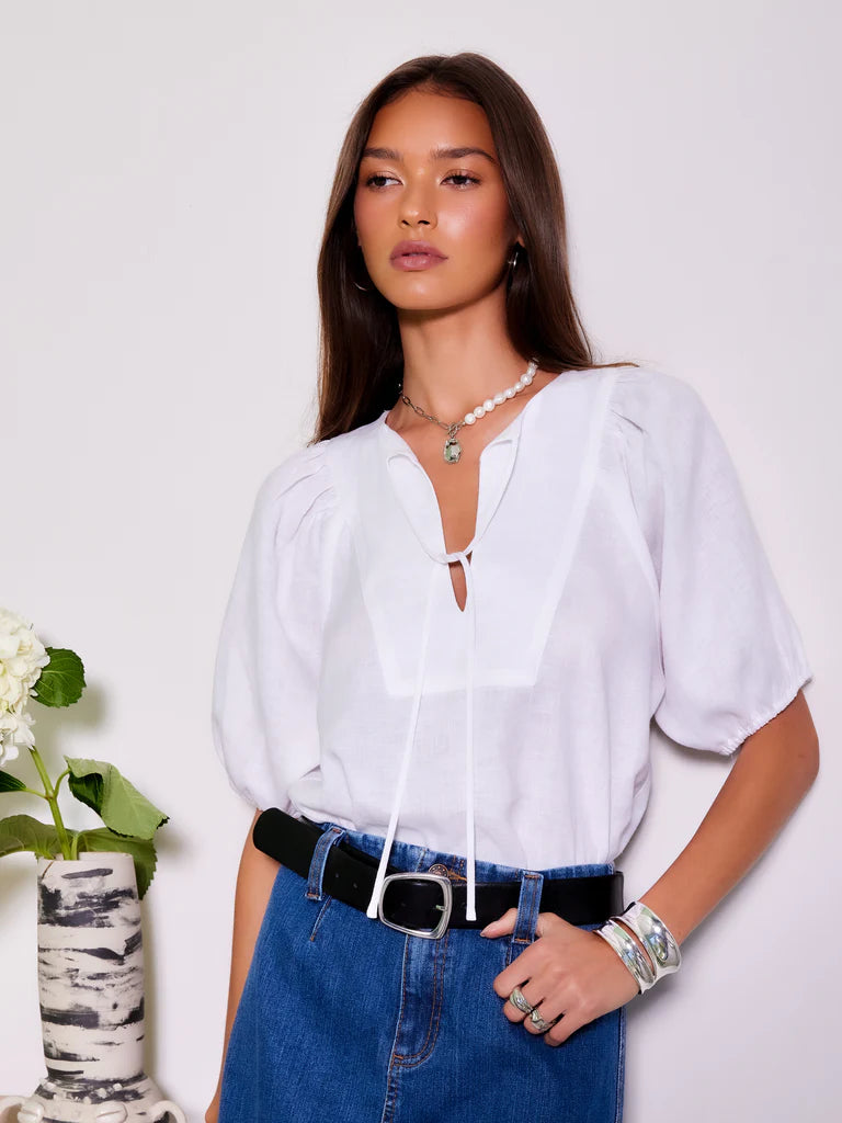 FIFTEEN TWENTY Tie Neck Blouse - White