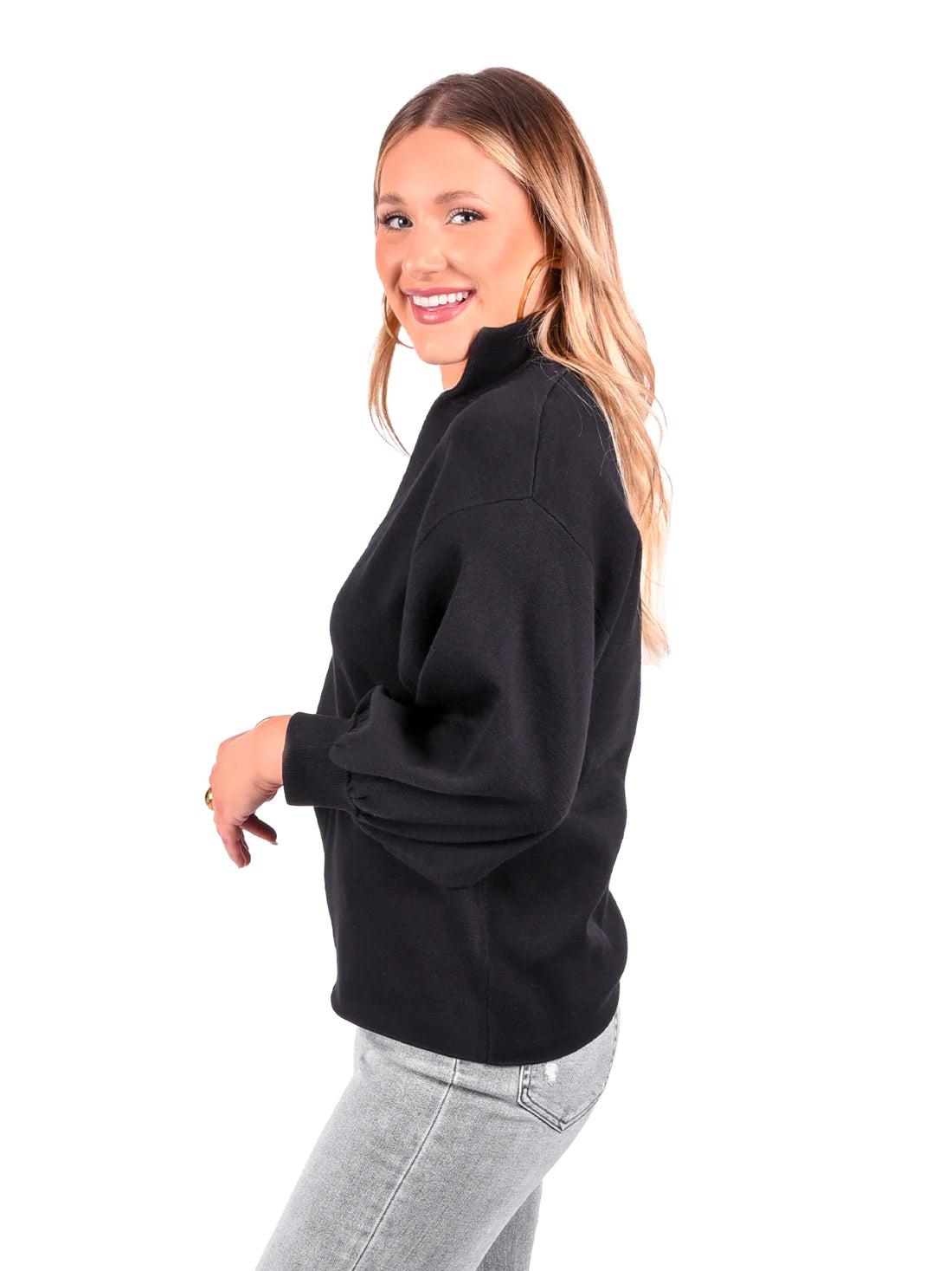 Iris Setlakwe Pleated Mock Neck Top - Black