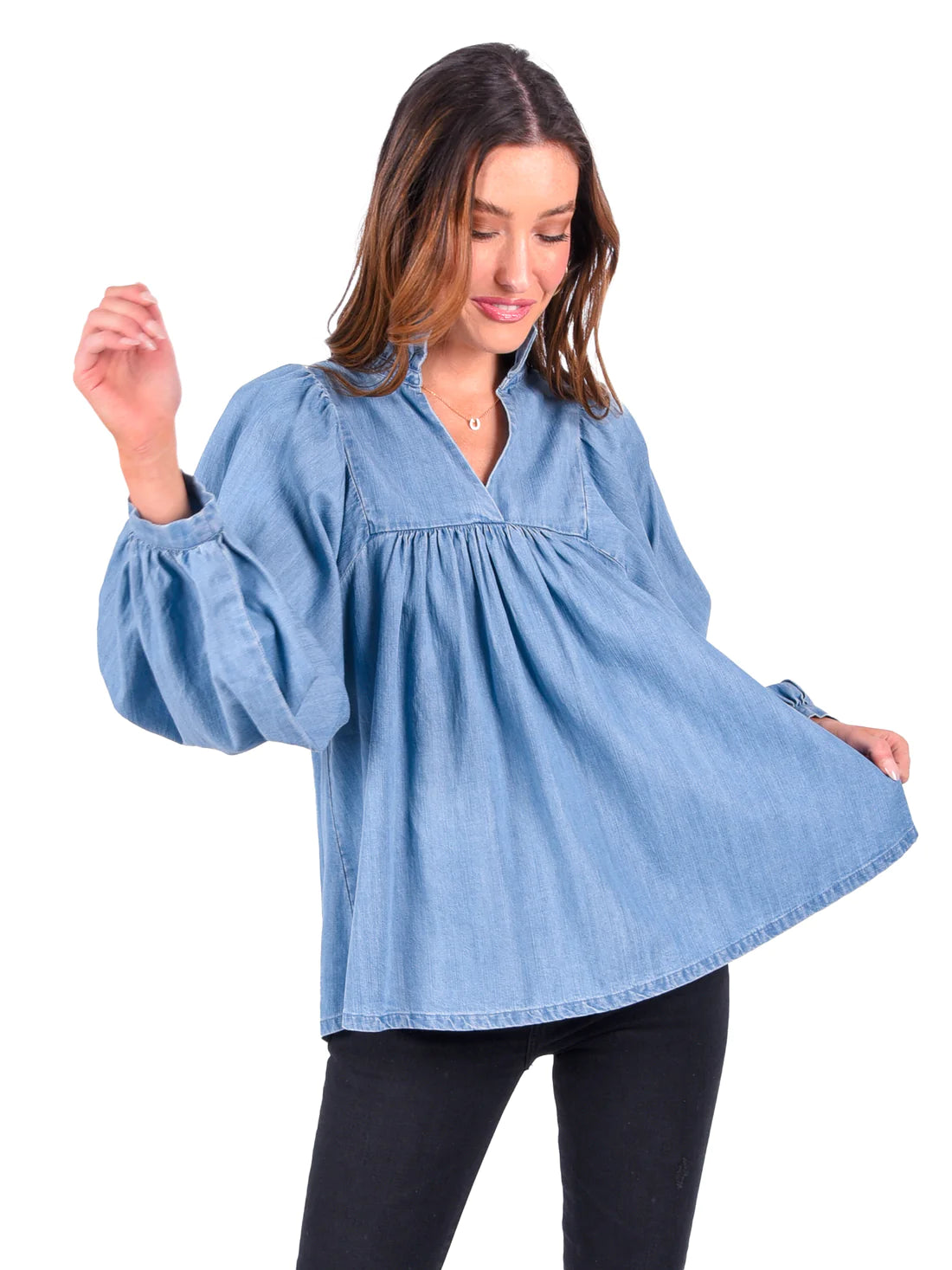 EMILY MCCARTHY Stella Top- Denim Chambray
