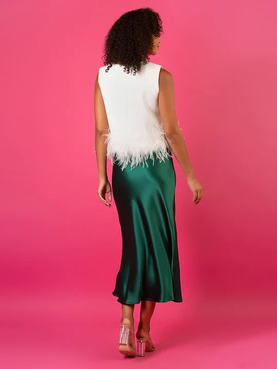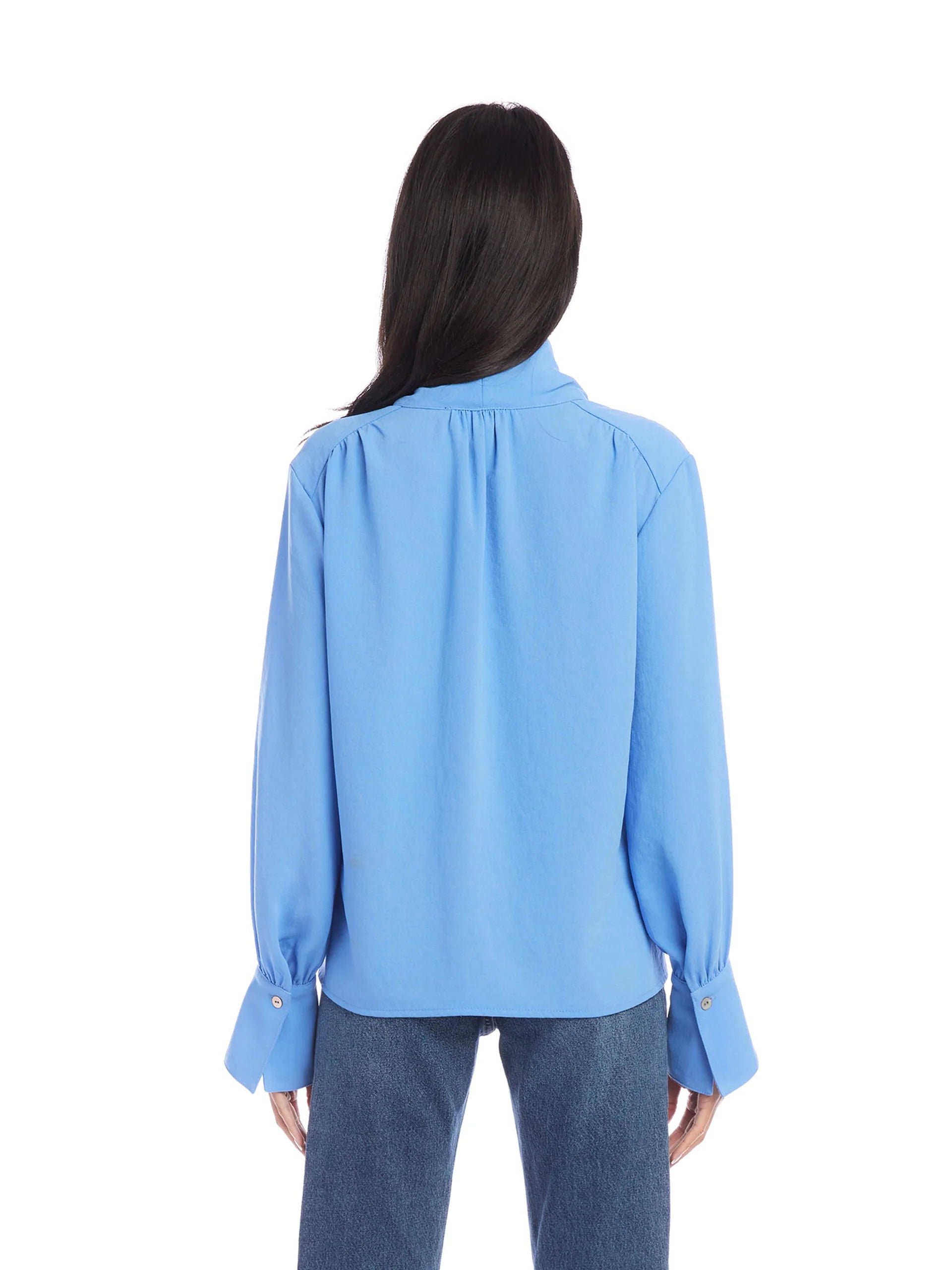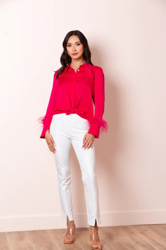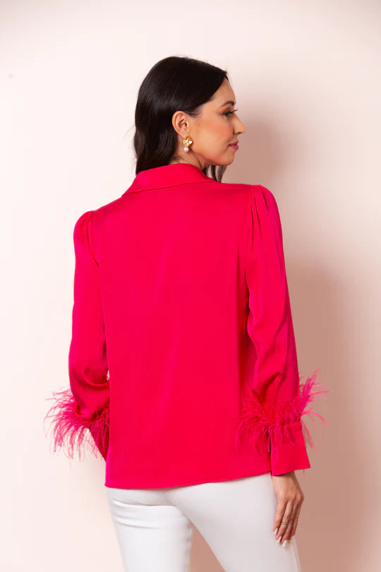 JESSIE LIU Silk Blouse with Feather Cuffs - Fuchsia