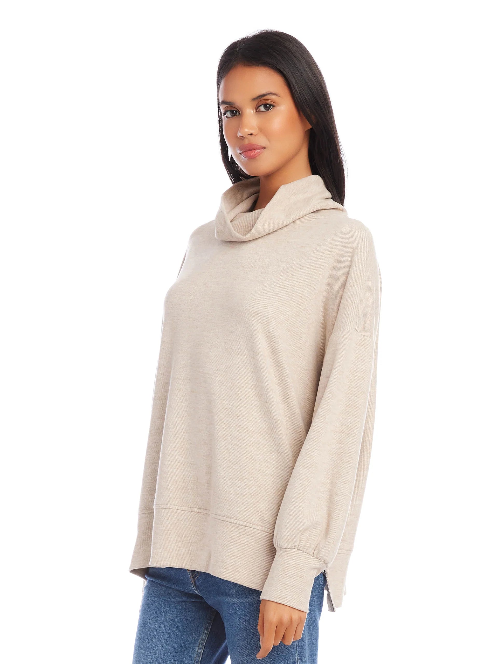 FIFTEEN TWENTY Funnel Neck Zipper Top - Oatmeal