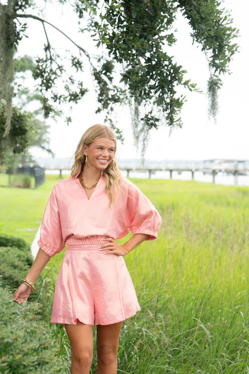 Elevate your everyday style with these chic and sophisticated high-waisted tailored shorts. Crafted from a luxurious metallic linen, these shorts boast a flattering high-waisted cut that nips in your curves and elongates your legs. The tailored silhouette delivers a polished look, while the front seam stitch detailing adds a touch of edgy flair. These versatile shorts are perfect for dressing up or down. Pair them with a crisp white blouse and blazer for a chic office ensemble, or team them with a tank top and sneakers for a laid-back weekend look.