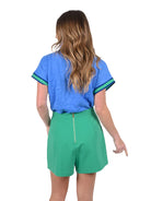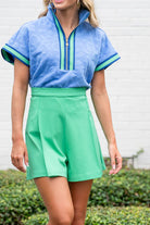 Elevate your everyday style with these chic and sophisticated high-waisted tailored shorts. Crafted from a luxurious ponte knit fabric, these shorts boast a flattering high-waisted cut that nips in your curves and elongates your legs. The tailored silhouette delivers a polished look, while the front seam stitch detailing adds a touch of edgy flair. These versatile shorts are perfect for dressing up or down. Pair them with a crisp white blouse and blazer for a chic office ensemble, or team them with a tank top and sneakers for a laid-back weekend look.