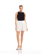 Intricate details meet comfort in these shorts that exude a touch of romantic and whimsical vibe. Made of lightweight solid lawn cotton fabric and a convenient tie, these shorts are an ideal choice for leisurely strolls, picnics, or any casual outing under the sun.
