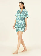 Indulge in style and comfort with our women's pajama set, featuring a button-down short-sleeve top and adjustable drawstring shorts. Captivating prints and an easy fit make these the perfect blend of fashion and relaxation.