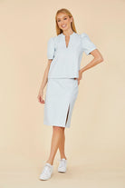 DOLCE CABO Vegan Leather Skirt - Sky Blue