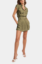 Stay easy and breezy all summer long in the Morgan. Crafted with a soft linen blend, lined shorts, glam gold rope buttons and front patch pockets, this belted one piece is perfect for packing for a long weekend getaway to the beach. Complete your chic coastal look with wedges and sunglasses.