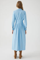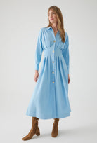 The Alba Dress by Exquise is stylishly quirky with its long sleeves and buttoned cuffs, front button closure, and unique pleated detailing. The collared neckline adds a touch of sophistication to this playful piece. Perfect for any occasion, this dress will definitely turn heads!