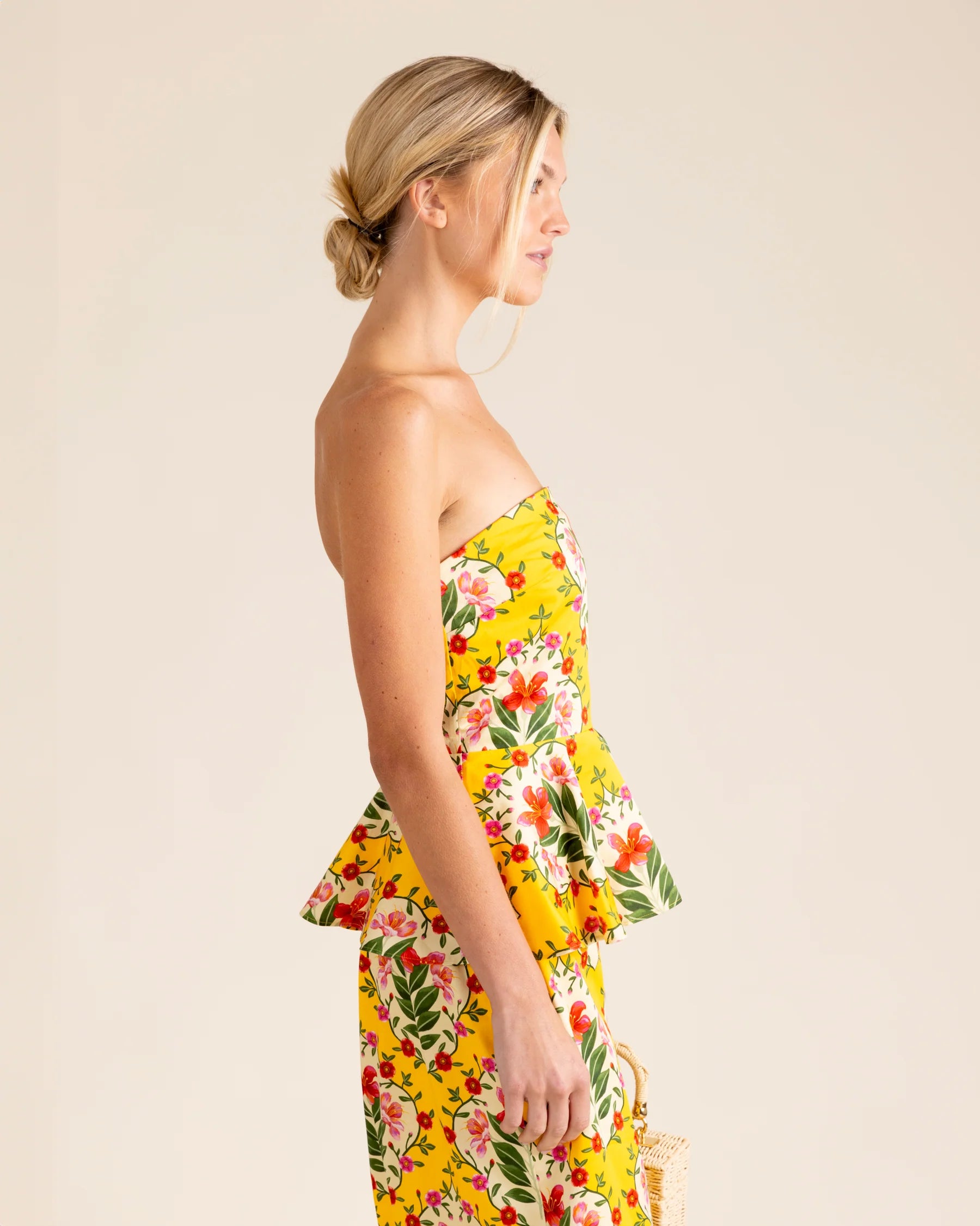 Your new favorite summer top has arrived! Available in our gorgeous Yellow Bouquet print, the Melissa is a strapless top with a fitted bodice that flares out for a flattering look. Pair it back with our Maggie Skirt for the perfect summer outfit!