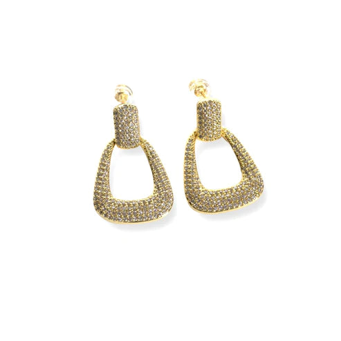 The Demi Earrings are crafted with 18K gold plating over sterling silver for a touch of luxury. The small cubic zirconia stones add a sparkling touch to these statement earrings, making them perfect for every occasion.