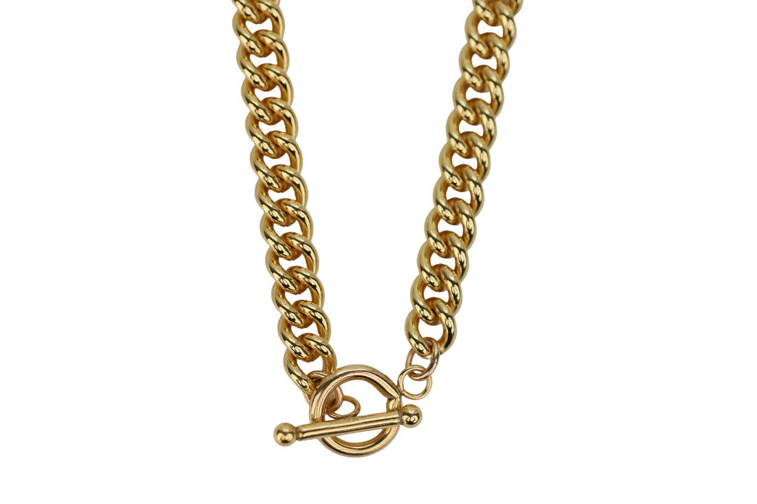 This Herrington Chain is perfect for any occasion. Crafted from sterling silver and heavily plated with 18K gold, it will add a touch of elegance to any look. 3 length sizes with a toggle clasp to choose a unique fit.