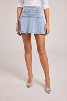 Add some flare to any look with the Adella. Inspired by the classic skater skirt, this unlined mini skirt is crafted with a light, semi-stretchy, chambray-inspired denim, creating a piece that's both comfy and stylish. Pair with a silky tank and wedges for a fun and flirty look.