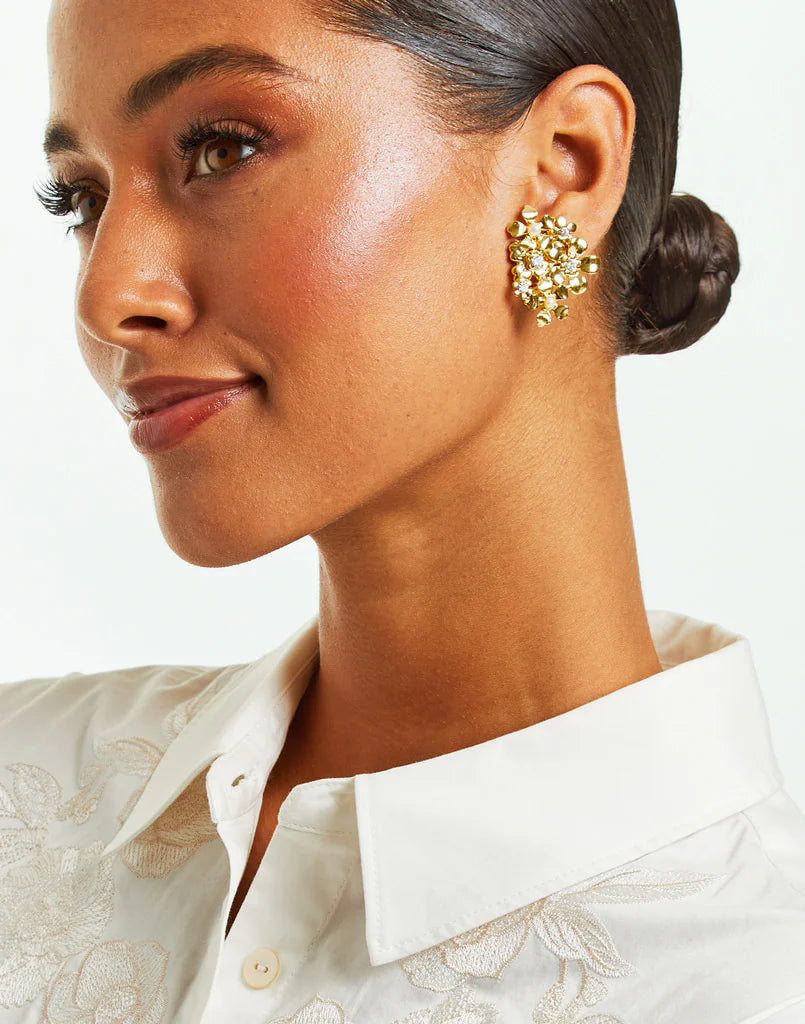 Gold plated clip-on earringPearl and gem detailsWhen not using store in the provided Mestiza keepsake pouch