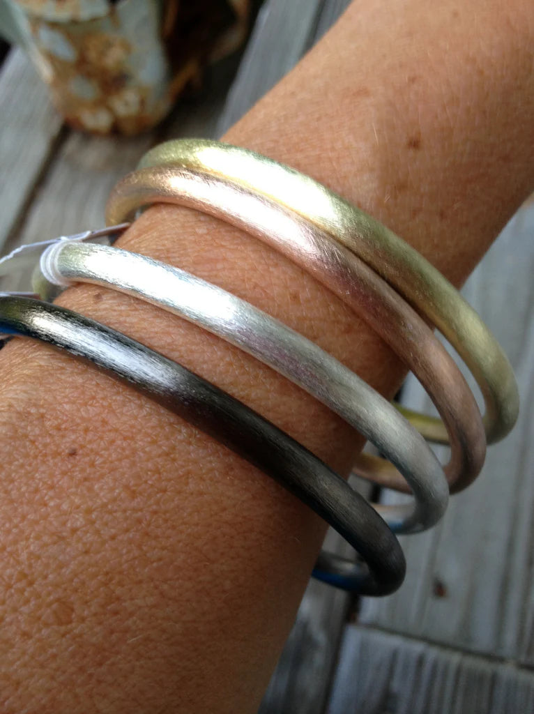 Handmade in Brazil. Even without edges, this round bangle provides the fashion edge you are looking for. You can truly make a statement by wearing it stacked with your all-time faves!