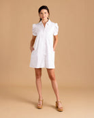 The Felix is a short, linen blend dress with a V-neckline that comes in at the waist to give you that super flattering fit.