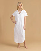 Get ready to relax by the pool in the Macklyn dress. This short sleeve maxi features a cotton material with a collar and makes for a chic summer look!
